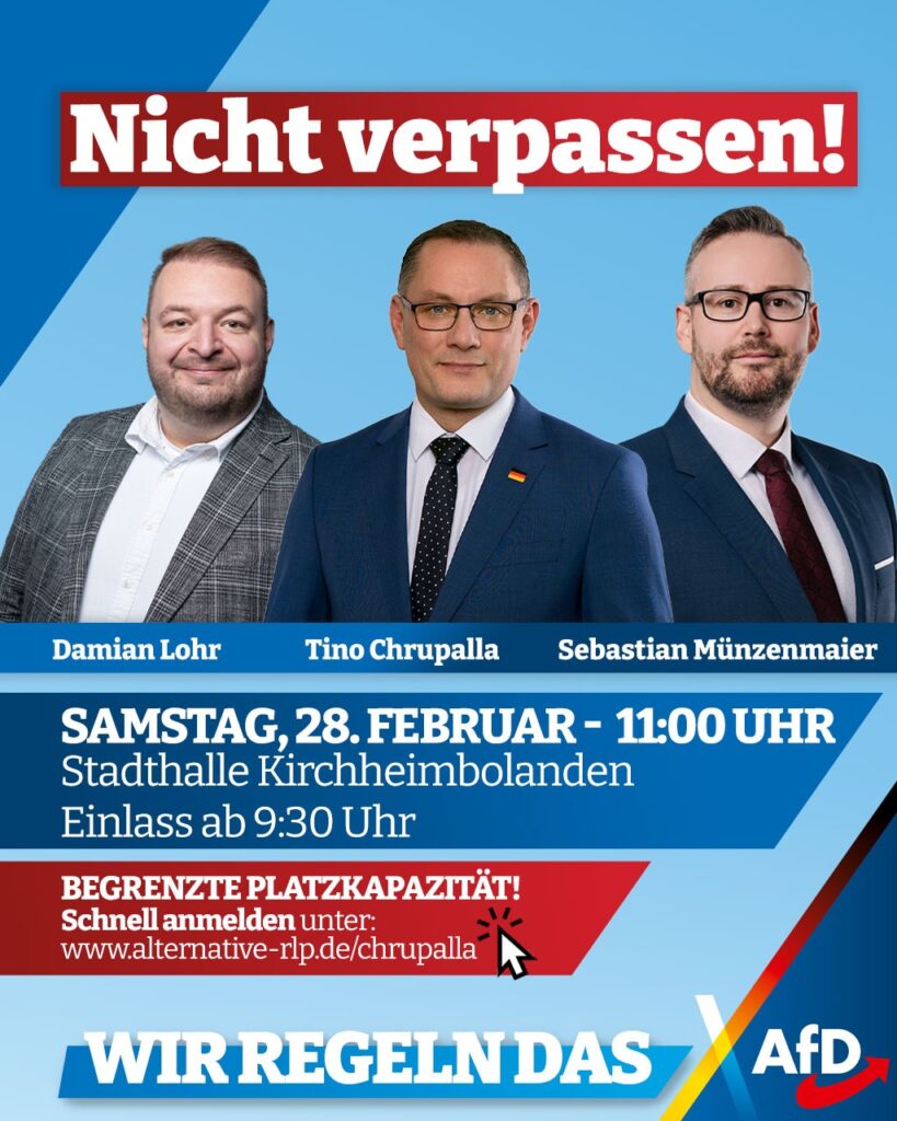 Die AfD-Zweibrücken setzt sich für freie Bürger sowie direkte Demokratie, Gewaltenteilung und Rechtsstaatlichkeit ein. Soziale Marktwirtschaft und Selbstbestimmung sind uns ebenso wichtig wie Föderalismus, Familie und die gelebte Tradition der deutschen Kultur.